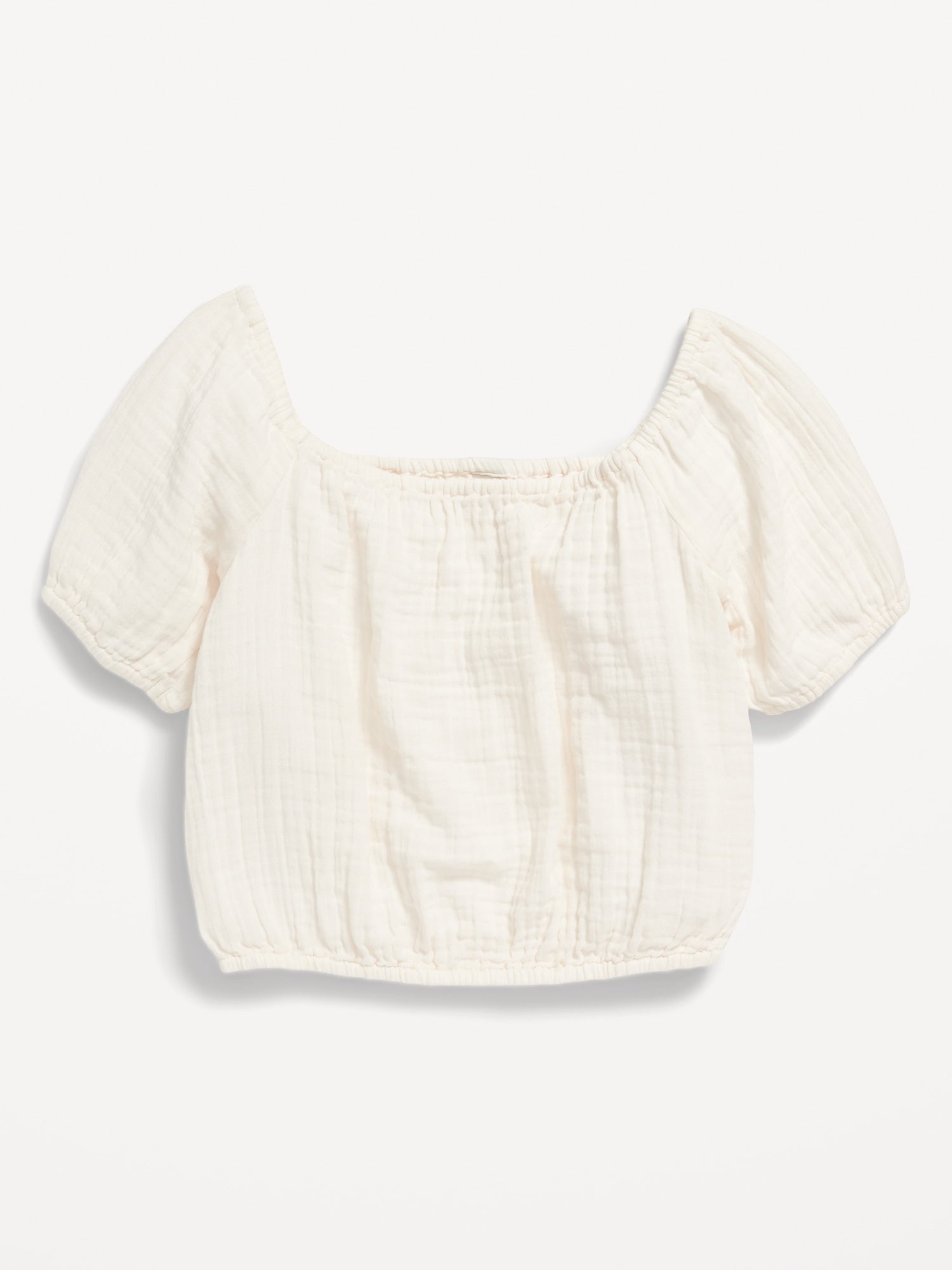 - Girls short-sleeve top hits at waist.
