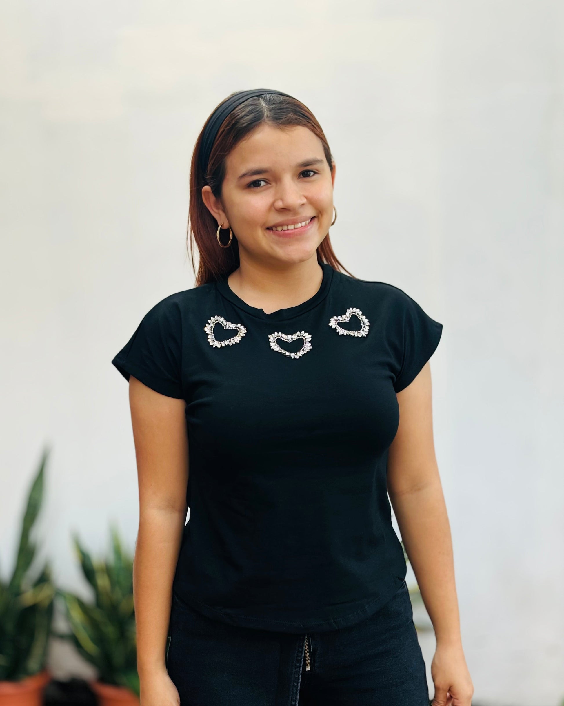 Camisa corazones brillantes negra S-XL IN1-2219 450350