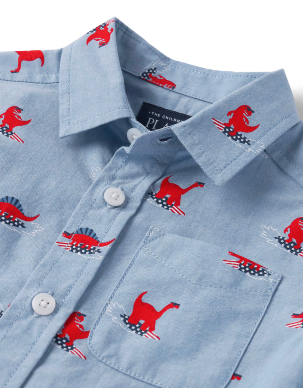 Camisa formal azul celeste dinosaurios Childrens Place niño