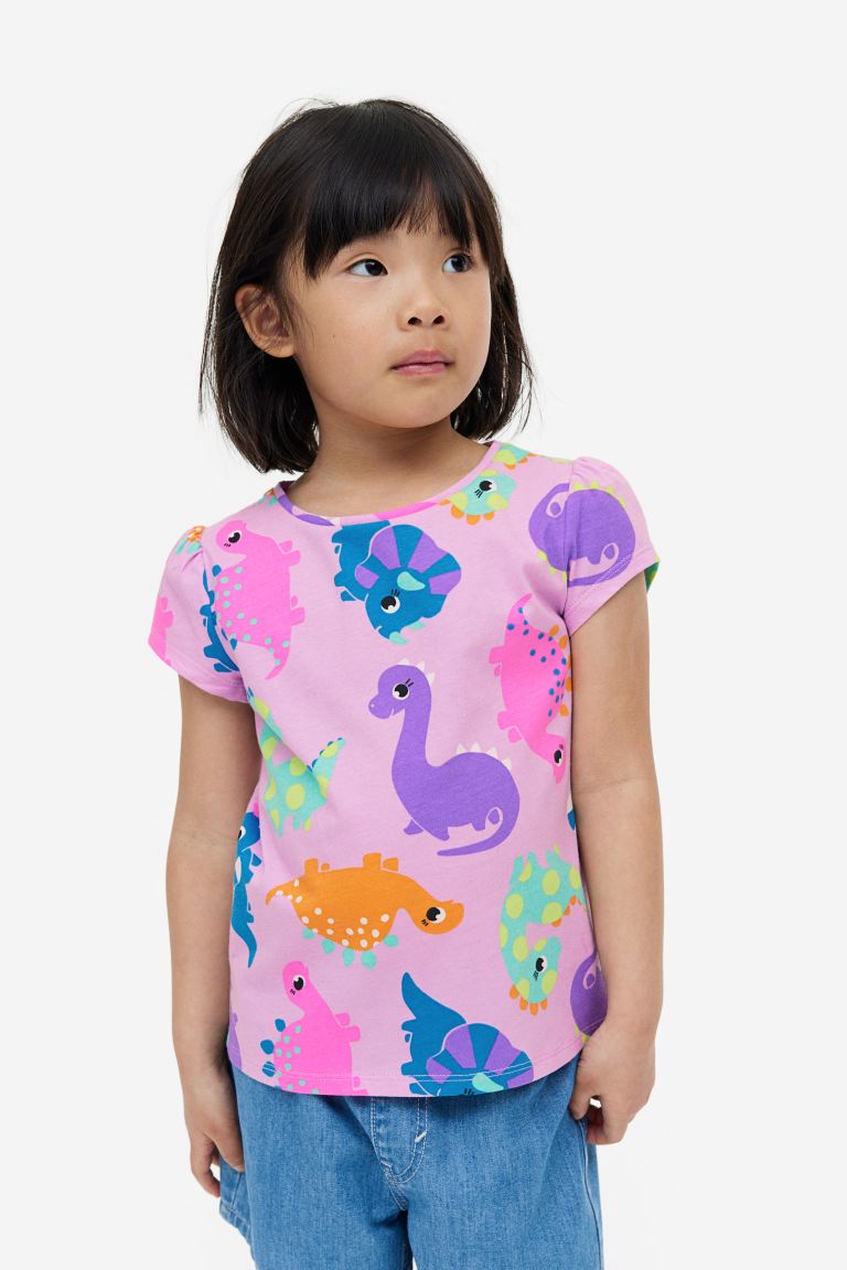 Top in soft cotton jersey with a printed design. Short puff sleeves.