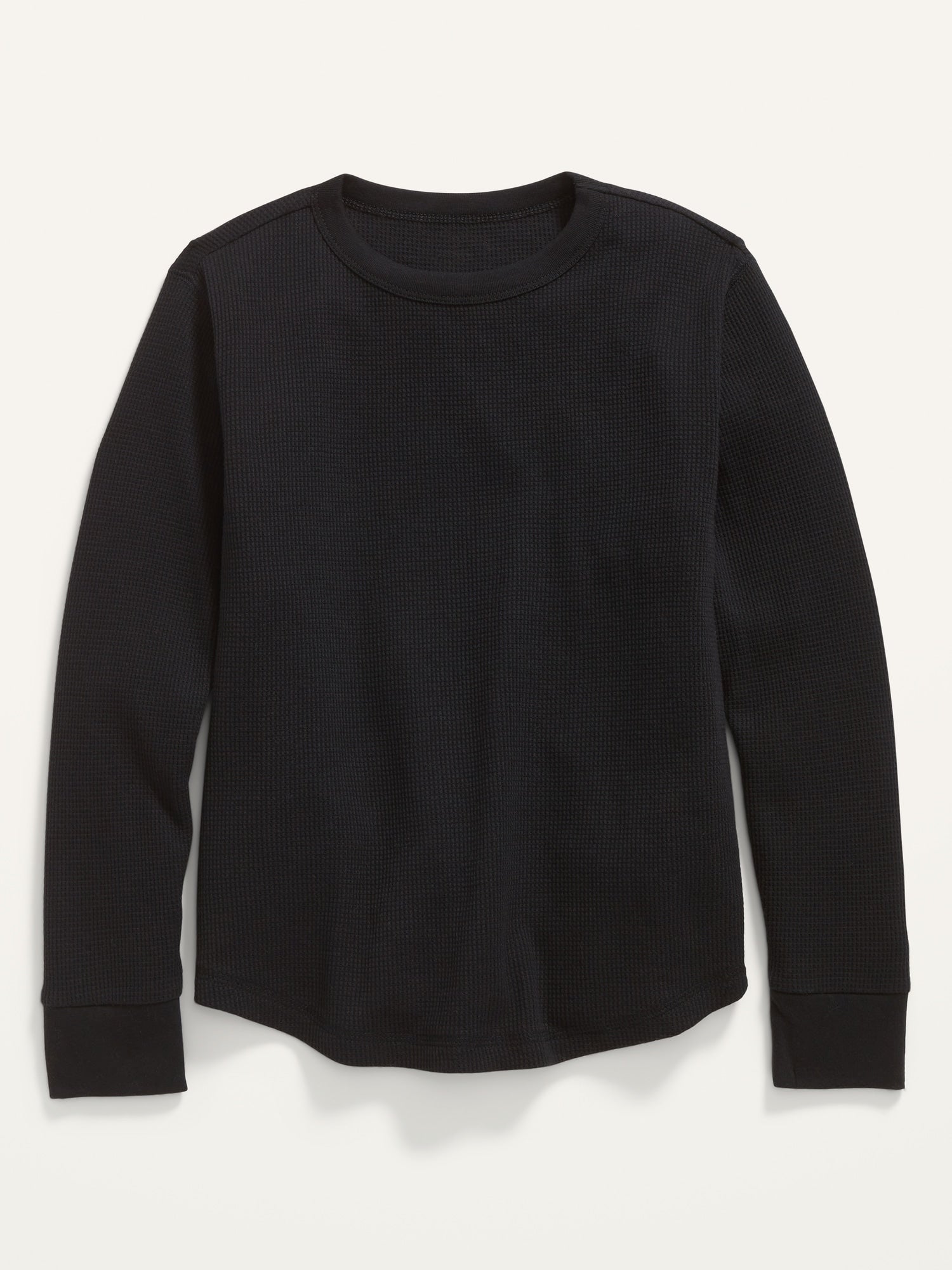 - Unisex toddler thermal-knit t-shirt hits below waist.