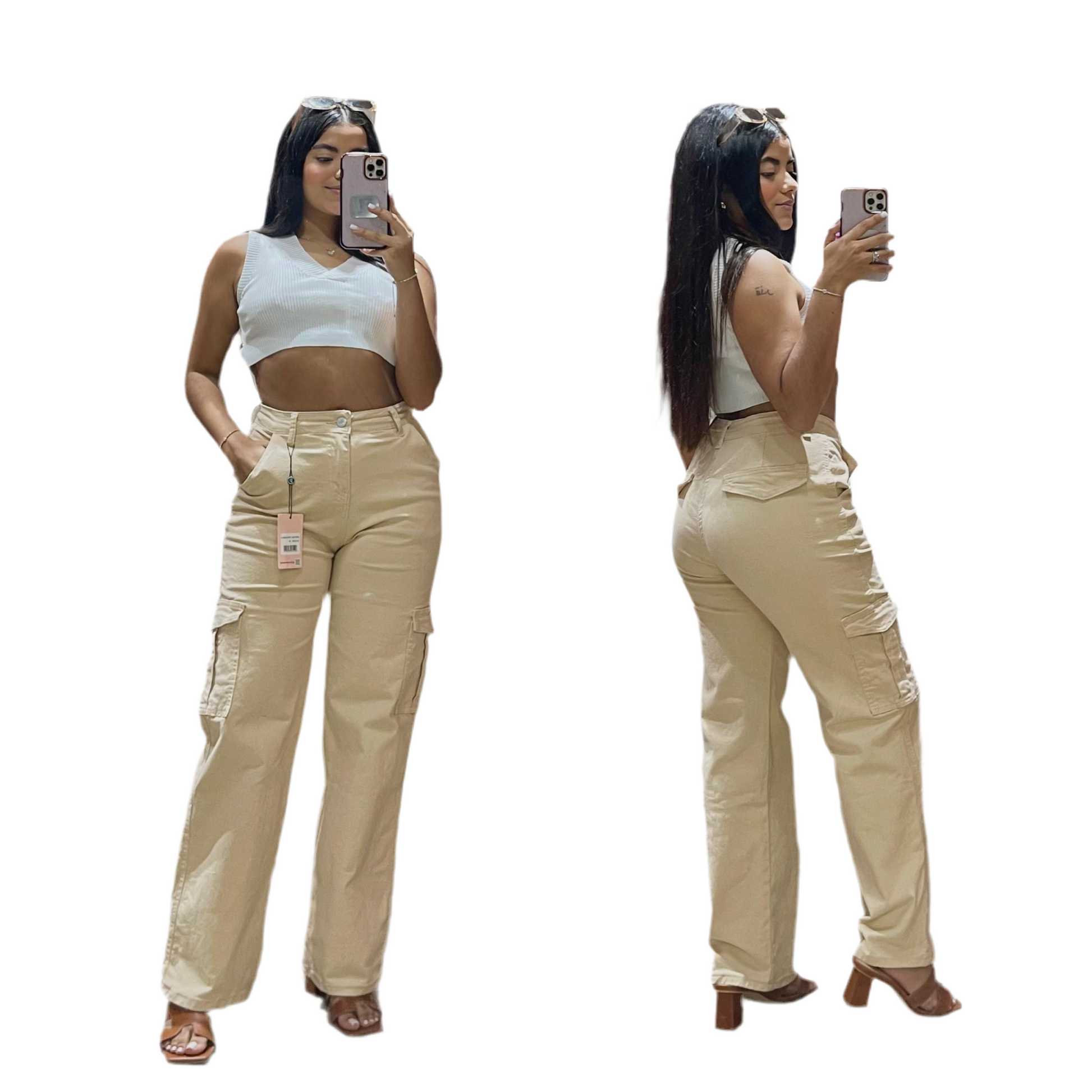 Jeans pantalon cargo dama CPD1204-4 beige 590/465