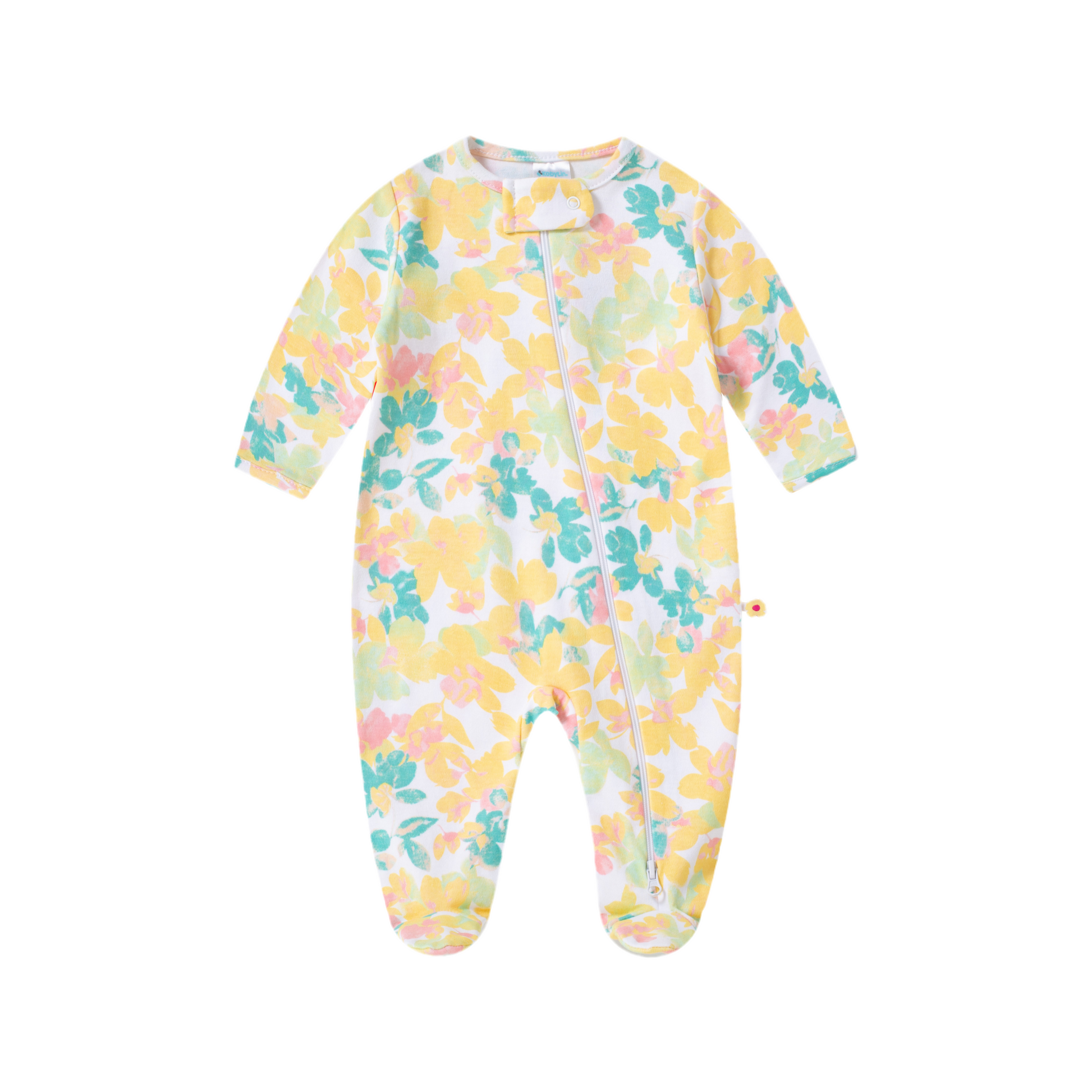 Pijama bebe niña Mameluco largo al pie flores amarillas