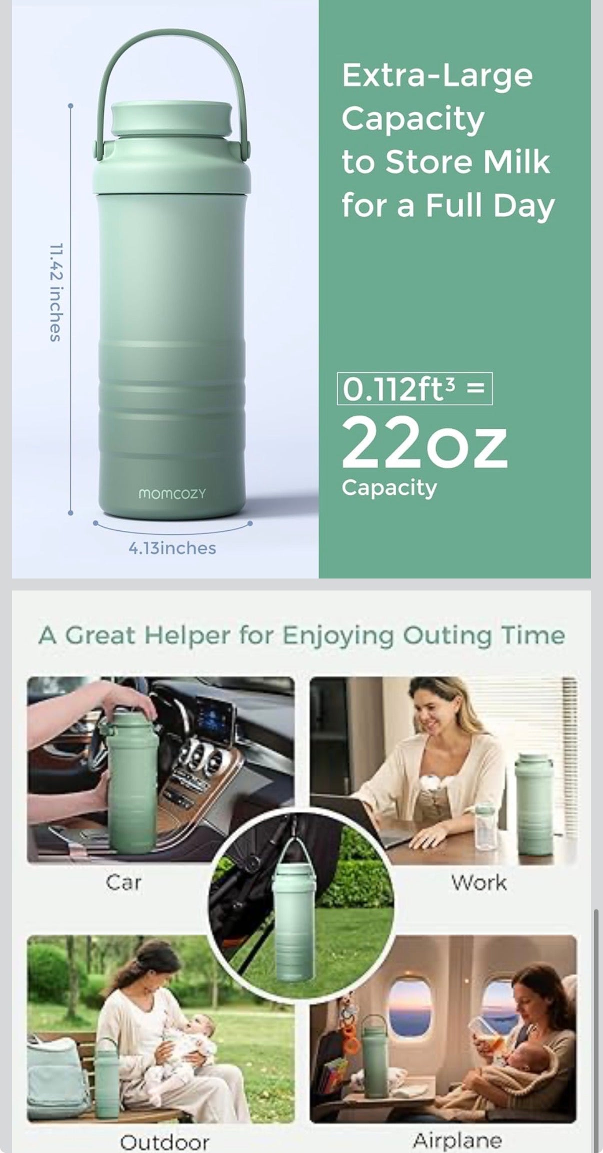 22 oz de mayor capacidad y almacenamiento separado: Un verdadero cambio de juego con botellas de almacenamiento individuales de 22 oz que satisfacen sus necesidades de almacenamiento y alimentación durante todo el día. Para acomodar múltiples sesiones de extracción, use los 2 biberones separados para dividir la leche caliente y fría, eliminando el deterioro y asegurando que la salud de su bebé esté protegida.