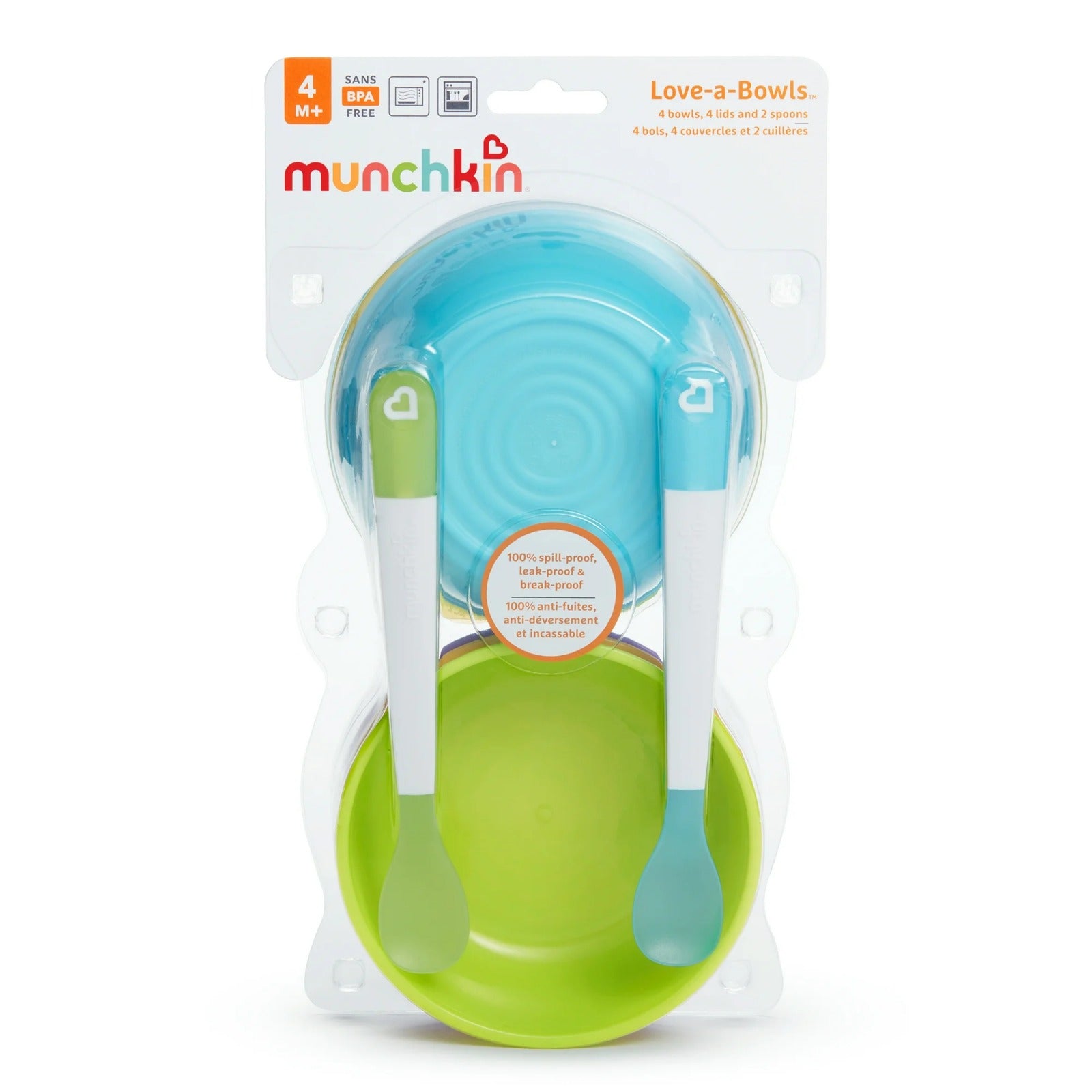 Set 10 platos cucharas bebe niño niña Munckin verde azul