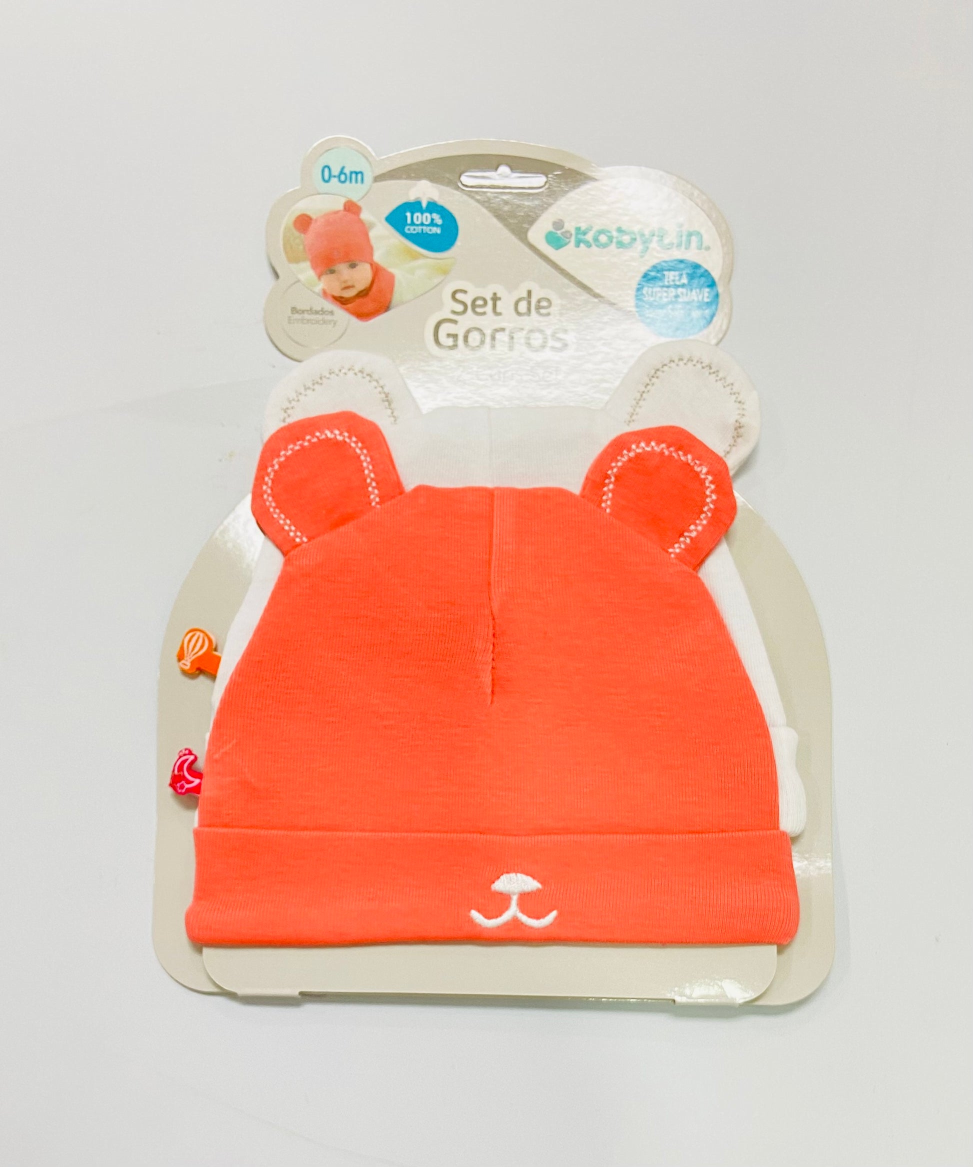 Set 2 gorros anaranjado blanco Kobytin bebe niño niña