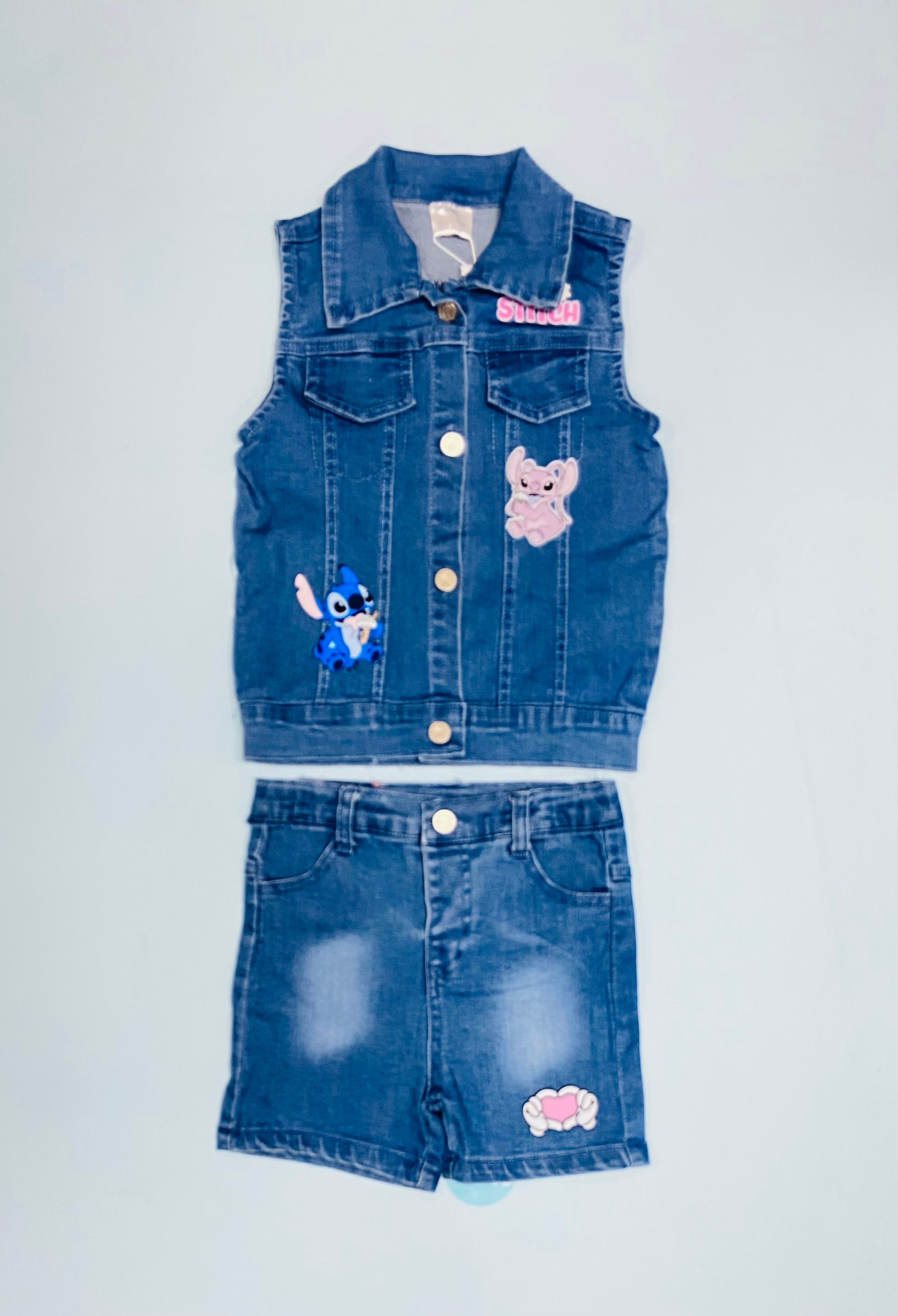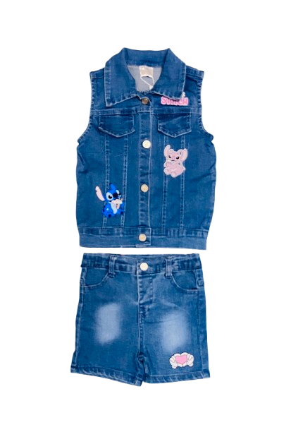 Set 2 piezas short y camisa jeans Stitch niña bebé D9MI1281B