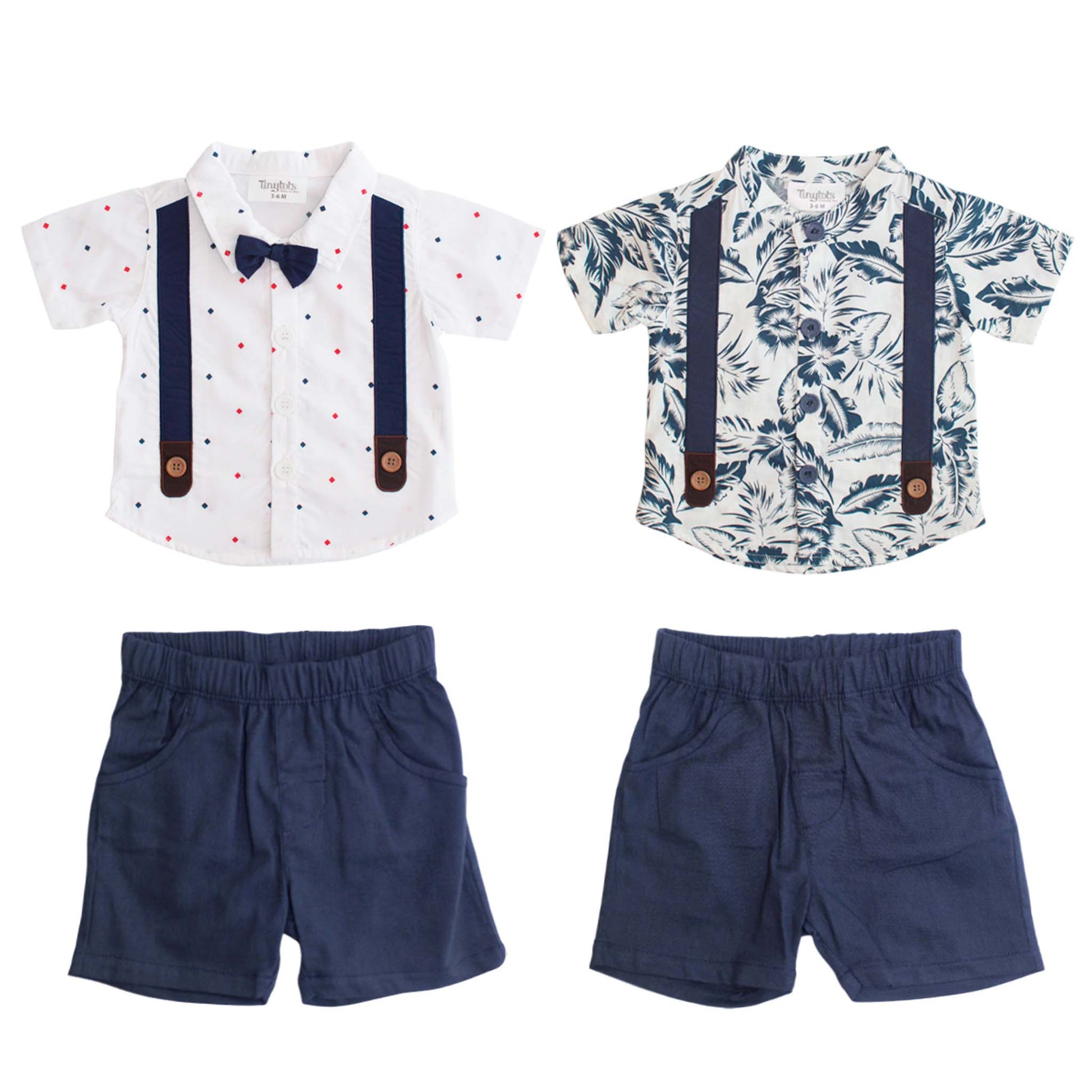 Set conjunto 2 piezas bebe niño camisa blanca short azul Tinytots 123-W28-3139