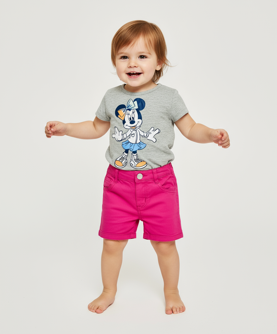 Set conjunto 2 piezas camisa gris short rosado Minnie bebe niña D9-MI-1312B promo 2x1000
