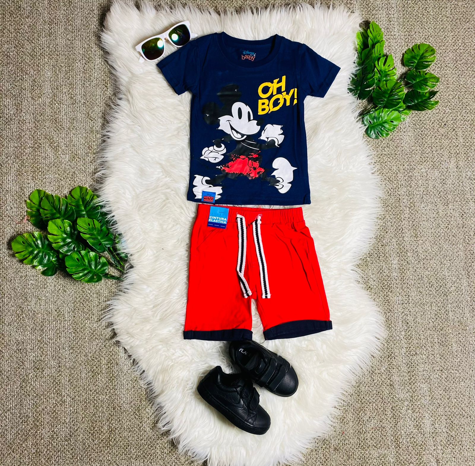 Set conjunto 2 piezas Mickey camisa azul bebe niño