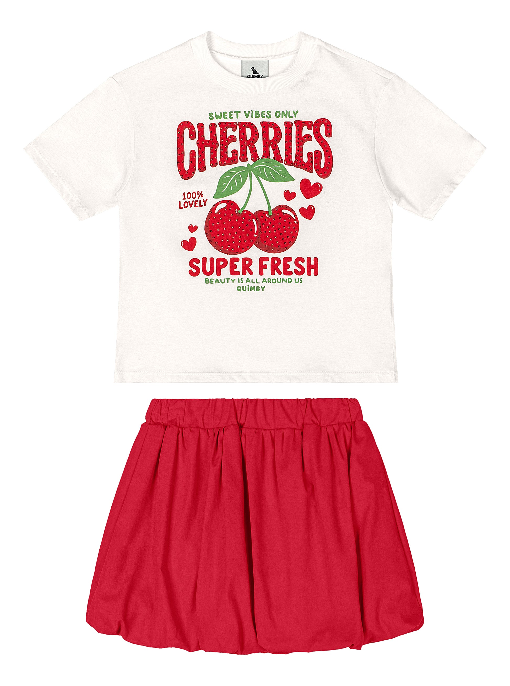 Set conjunto 2 piezas cereza camisa blanca falda roja niña Quimby 34544-000106
