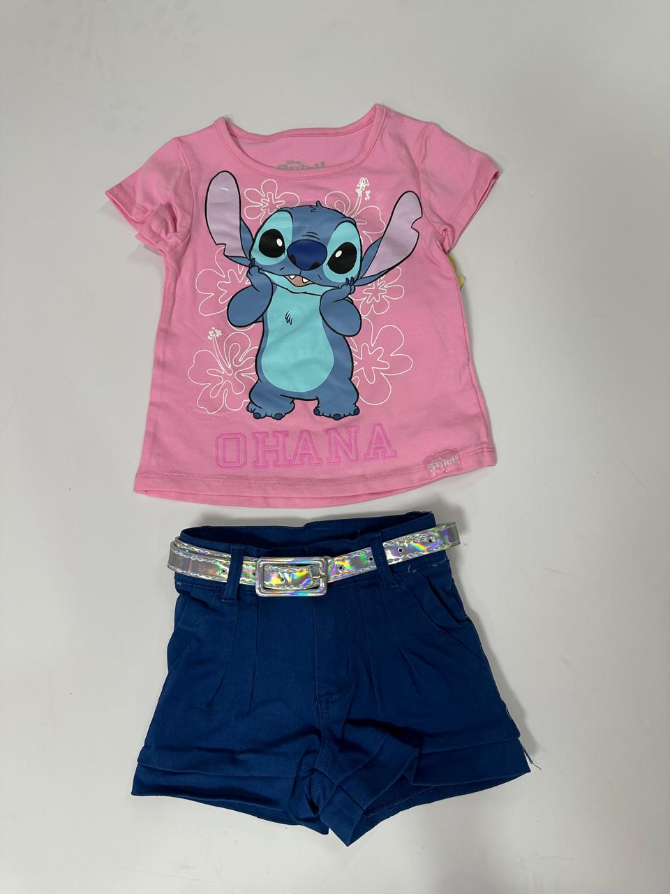 Set conjunto camisa rosada short azul niña Stitch D9-STI-109D