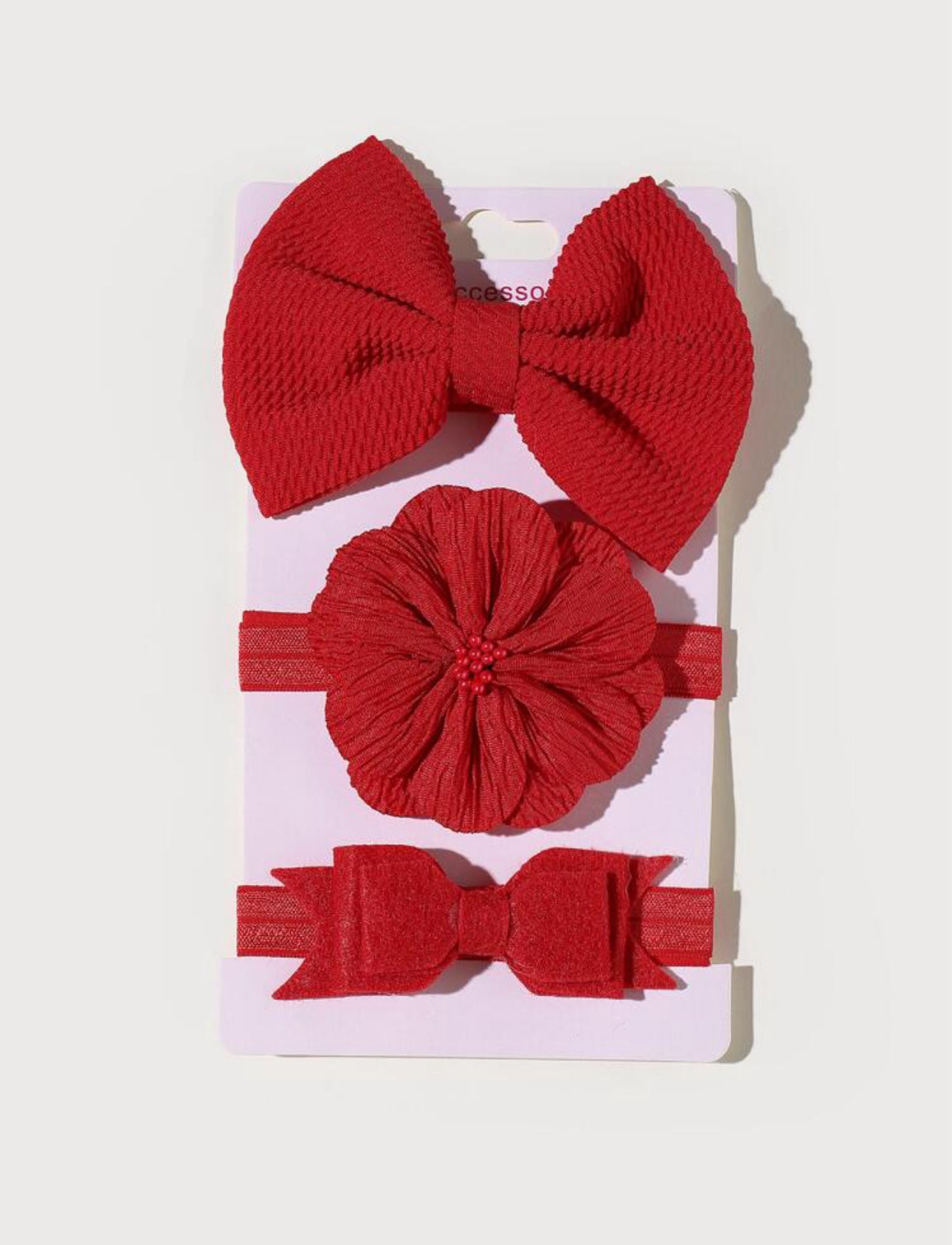Hair clip in metal with a glittery bow appliqué at top and long, curly hair extensions.