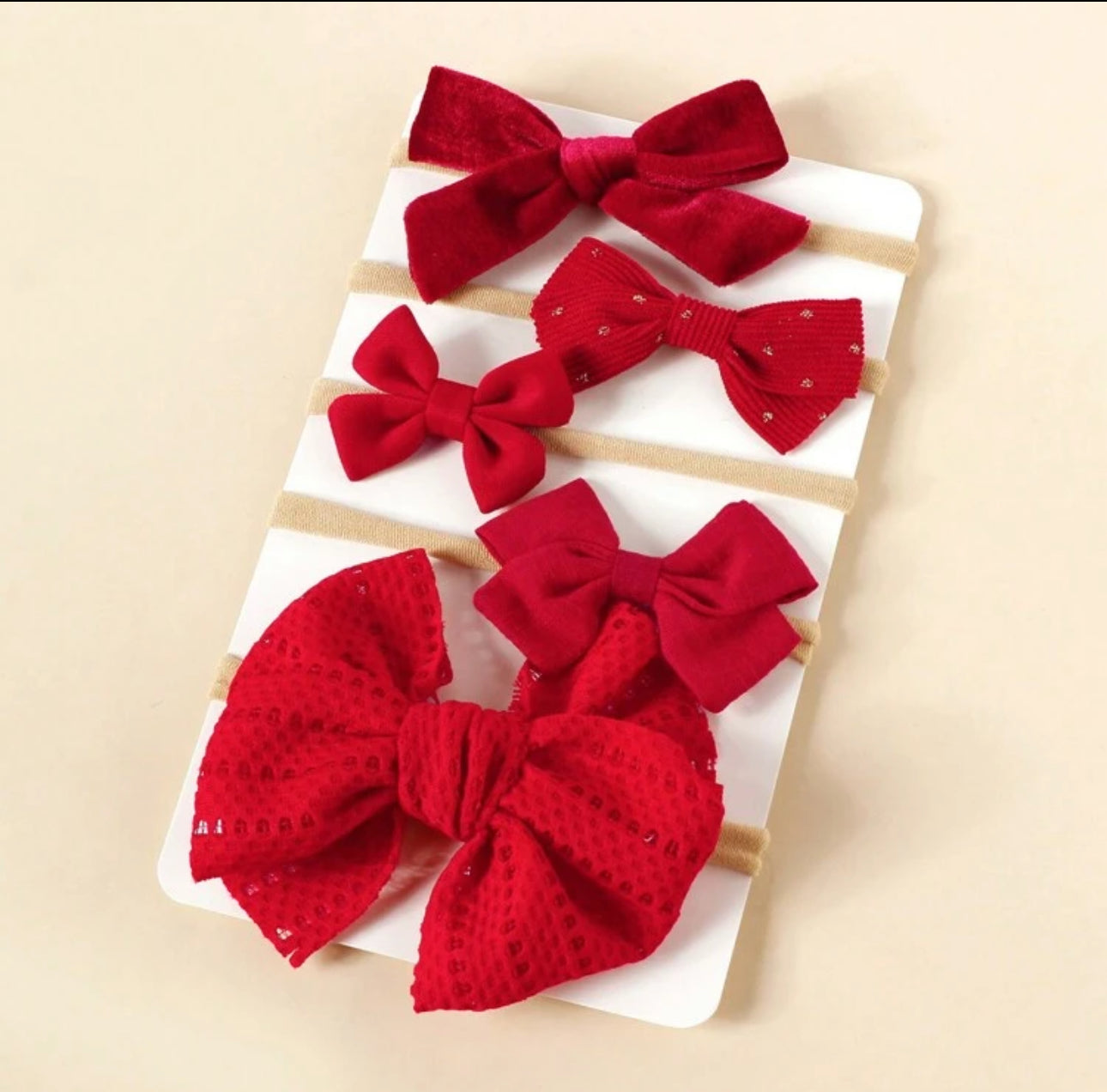 Hair clip in metal with a glittery bow appliqué at top and long, curly hair extensions.