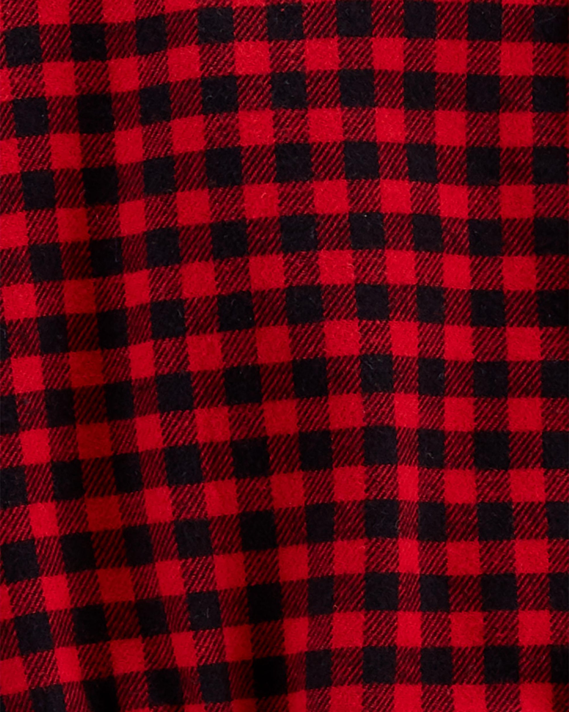 Made to match, this cute set is complete with an adorable plaid bodysuit and coordinating suspender pants.