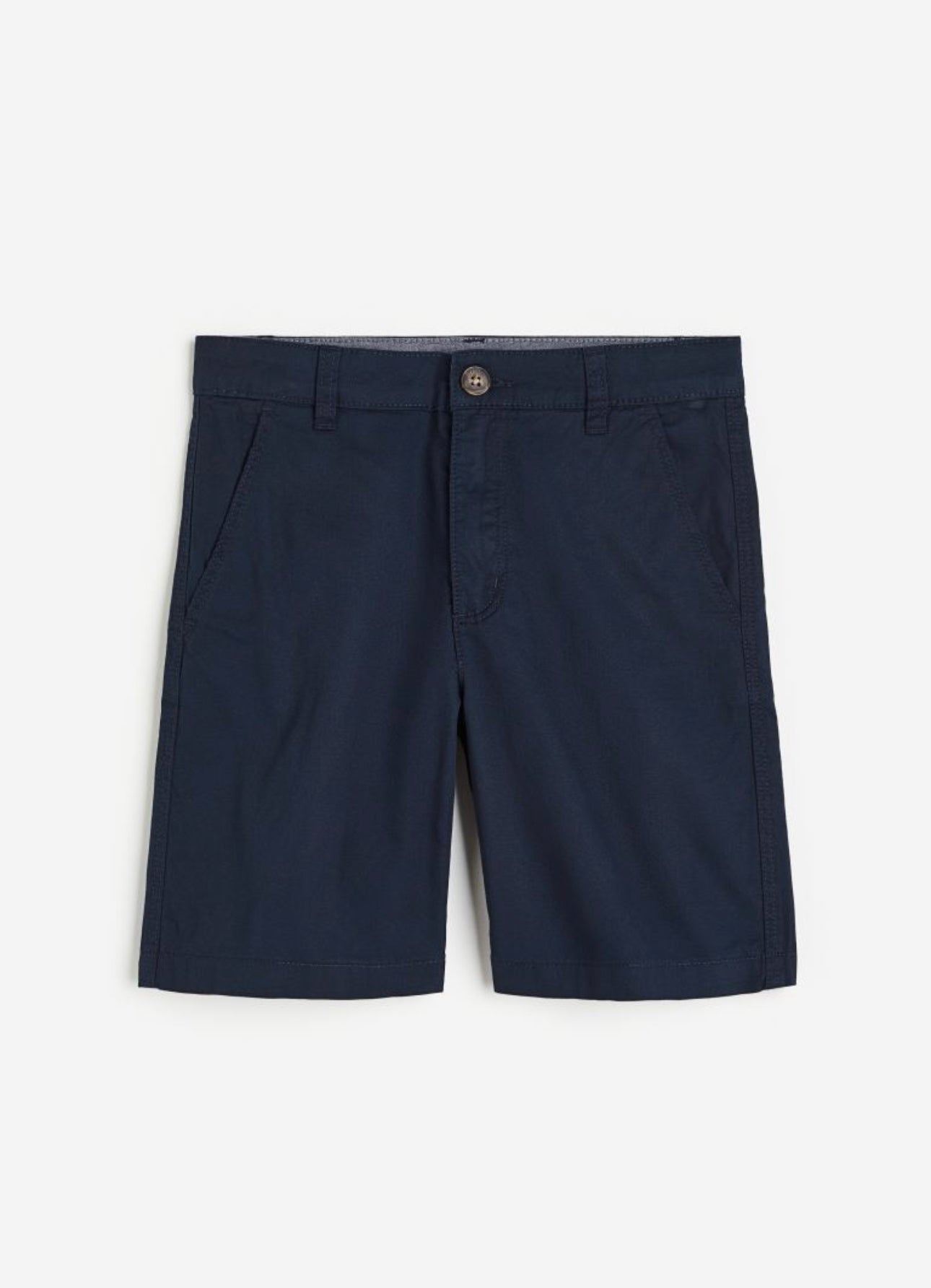 Slim-fit chino shorts in cotton twill. Adjustable, elasticized waistband and zip fly with button. Side pockets and a mock back pocket.
