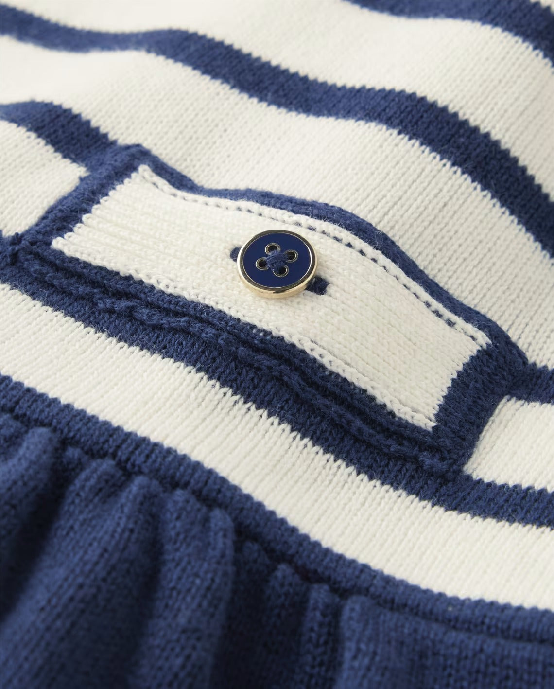 - ¡Una paleta de colores náuticos y detalles desde la punta hasta los pies adornan este vestido Parisian Chic!